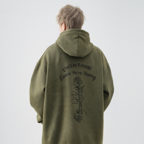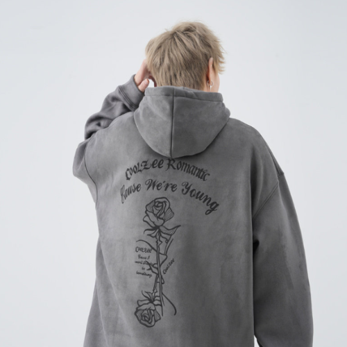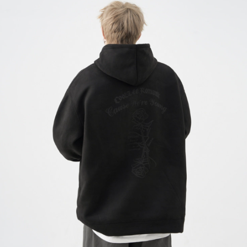 This 520G heavyweight suede fleece hoodie features a unique rose burnout pattern for a bold streetwear look. The thick brushed fleece lining provides excellent warmth for autumn and cooler days, while the oversized fit delivers relaxed comfort and modern edge. Designed for casual street styling, daily wear, and layering, this hoodie pairs easily with jeans, cargos, or sneakers. Ideal for fashion-forward men who want texture, warmth, and standout design in one versatile outer layer.