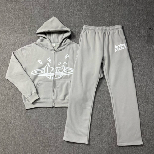 This Broken Planet inspired hoodie set features bold foam letter printing and a premium fleece lining for extra warmth and comfort. The zip-up hoodie design adds versatility, while the matching set creates a complete high street look.