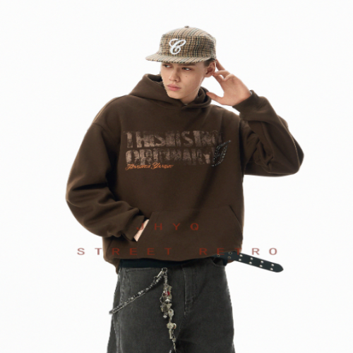The JHYQ vintage letter studded hoodie delivers bold American streetwear attitude with distressed lettering and metal stud details. Designed with a relaxed loose fit and soft fleece lining, it offers warmth and comfort for fall and winter wear. The pullover hooded design makes it ideal for daily outfits, casual street styling, or standout urban looks. Easy to pair with jeans, cargos, or layered jackets, this hoodie blends edgy design, comfort, and modern high-street appeal.