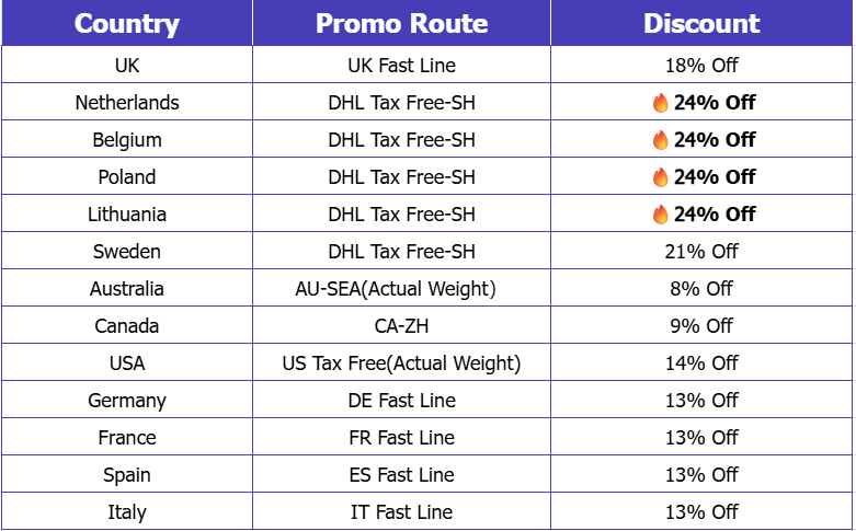 - Can be used together with discounted shipping routes; final eligibility is subject to the checkout page.